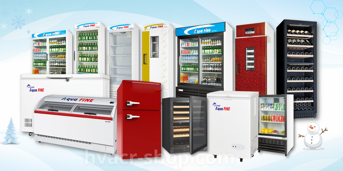 AQUA Fine, dòng tủ bảo quản lạnh Cao cấp Bán chạy Số 1 tại Hàn Quốc, đầy đủ chủng loại: Tủ mát, Tủ đông, Tủ đông cánh kính, Tủ kem, Tủ lạnh mini, Tủ rượu, Tủ mát siêu thị, Tủ sấy... Với nhiều tính năng vượt trội: Cửa kính: 3 lớp kính, tự động đóng giúp chống đọng sương và giảm tối đa tổn thất nhiệt. Không gian rộng hơn với các kệ siêu khỏe, dễ dàng điều chỉnh khoảng cách giữa các tầng và tăng giảm số lượng kệ. Sử dụng máy nén xuất xứ Korea, Spain... và nhiều tính năng vượt trội khác. Sản xuất, lắp ráp tại: Hàn Quốc, Việt Nam.